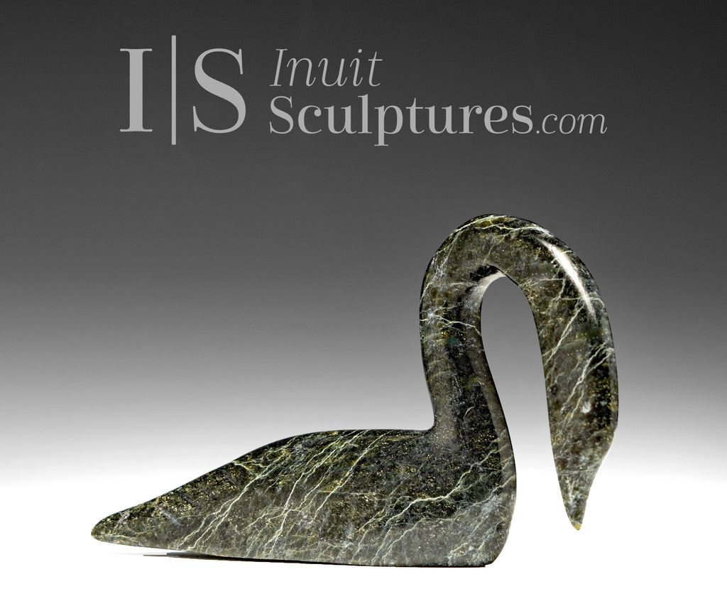 This swimming swan is a beautiful example of Curley's carving style with its compact, simplified form. The lines of the swan are crisp and yet Curley conveys serenity and calm with this elegant piece.