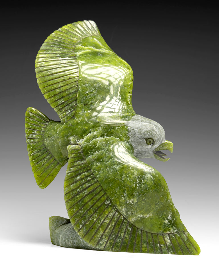Pitseolak carves about six eagles per year because they are physically demanding and require a lot of time.
