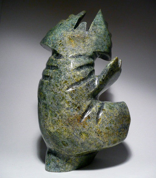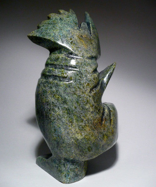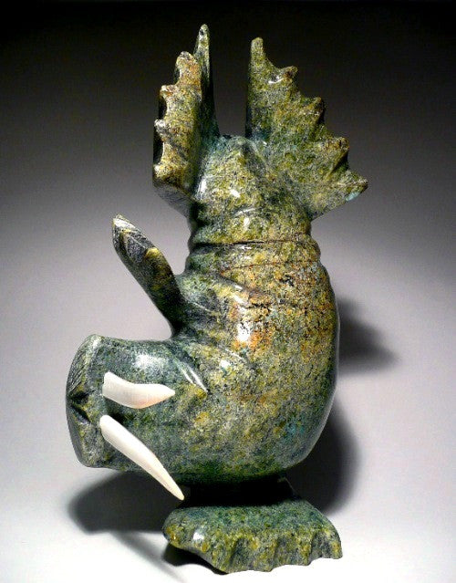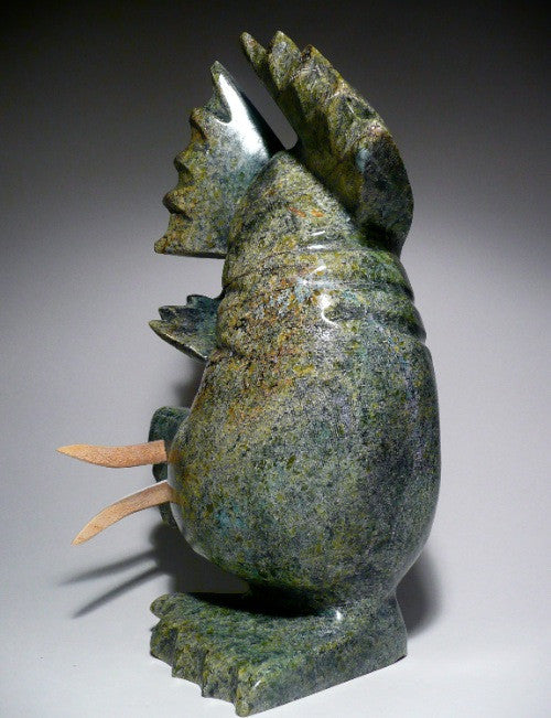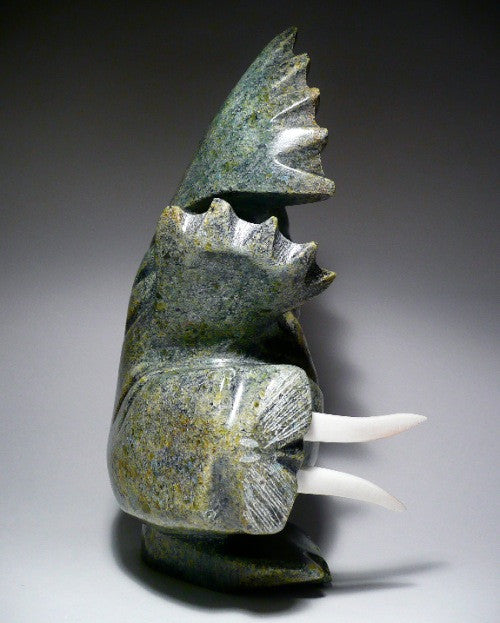 This is a really beautiful carving, and will be a center piece of your living room or office. There is much movement in this dancing walrus. The colors are traditional green.