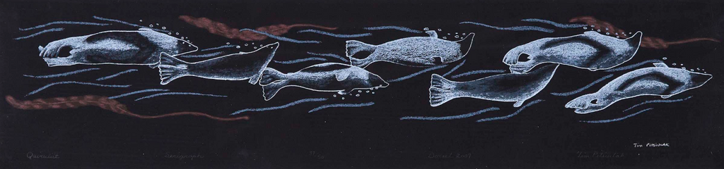 Tim Pitsiulak (1967-2016) was an Inuk artist and hunter best known for his large coloured-pencil drawings of Arctic scenery, wildlife and Inuit culture.