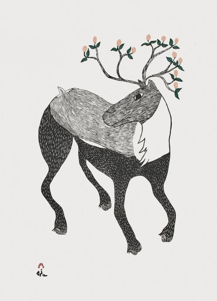 LAST PRINT in entire collection! 2021 Caribou in Bloom by NINGIUKULU TEEVEE
