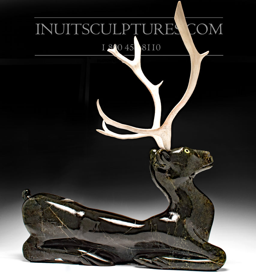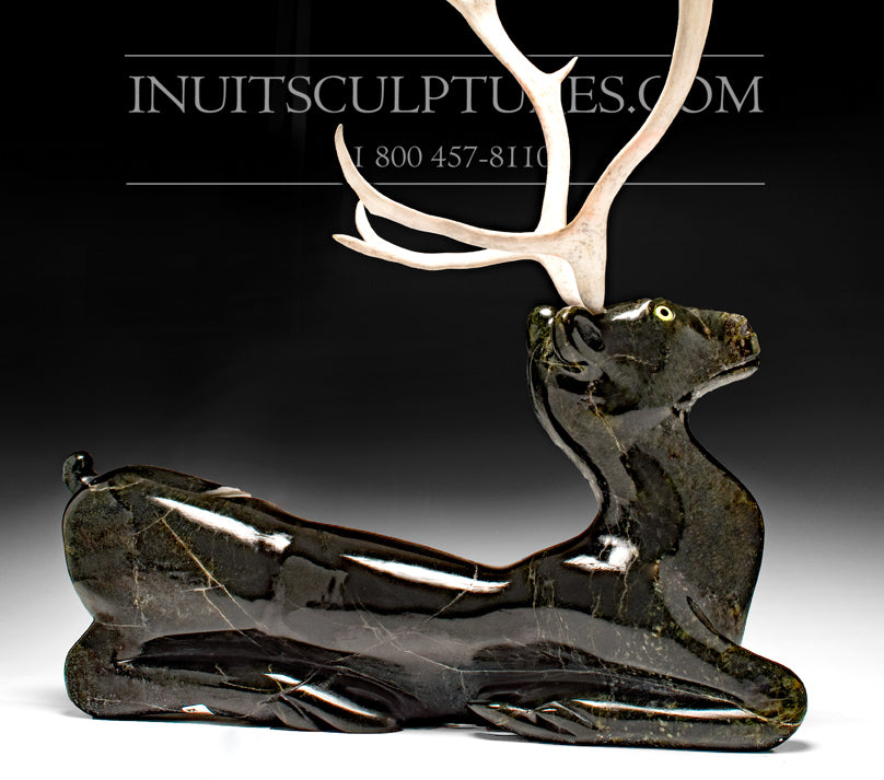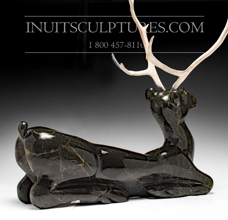 This stunning caribou was carved by Inuit carver Johnny Manning from the Inuit community Cape Dorset.