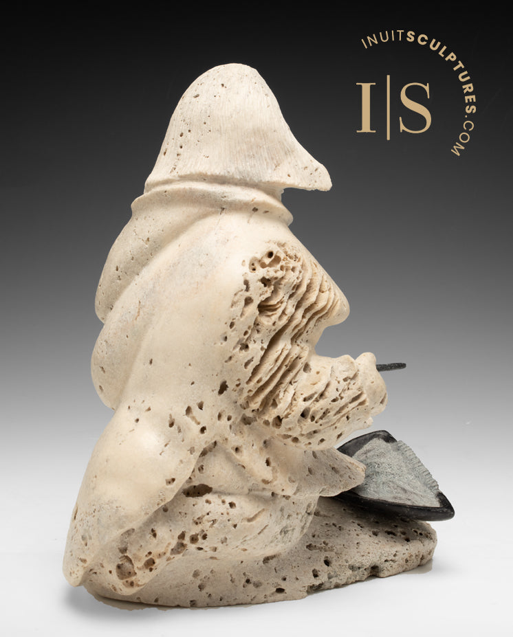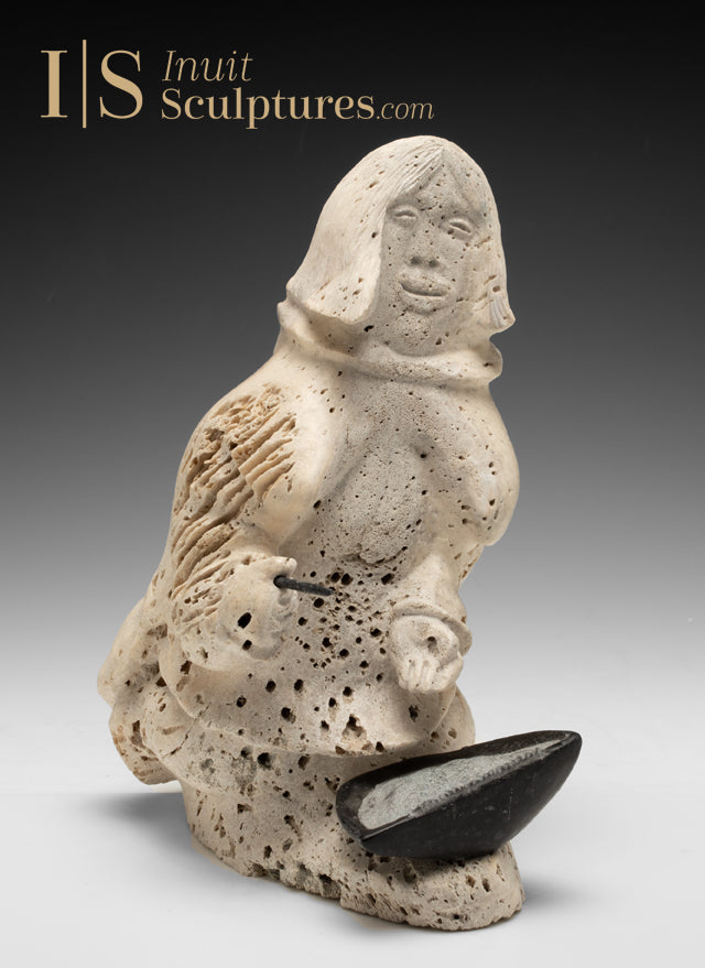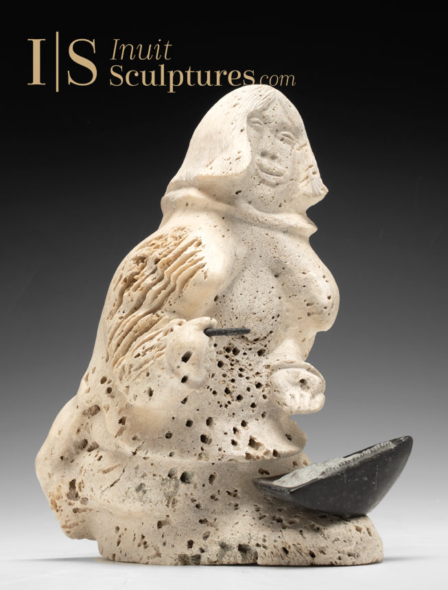 VINTAGE 9" Inuk Cooking with Qulliq by Jake Kudluk *Let There be Light*
