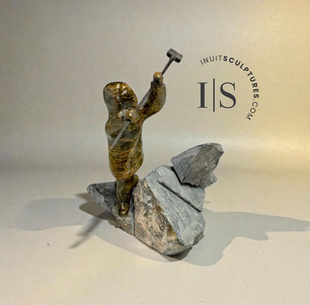 The reality is that the Inuit carvers must travel long miles often under dangerous conditions to saw or chip stone from open quarries.