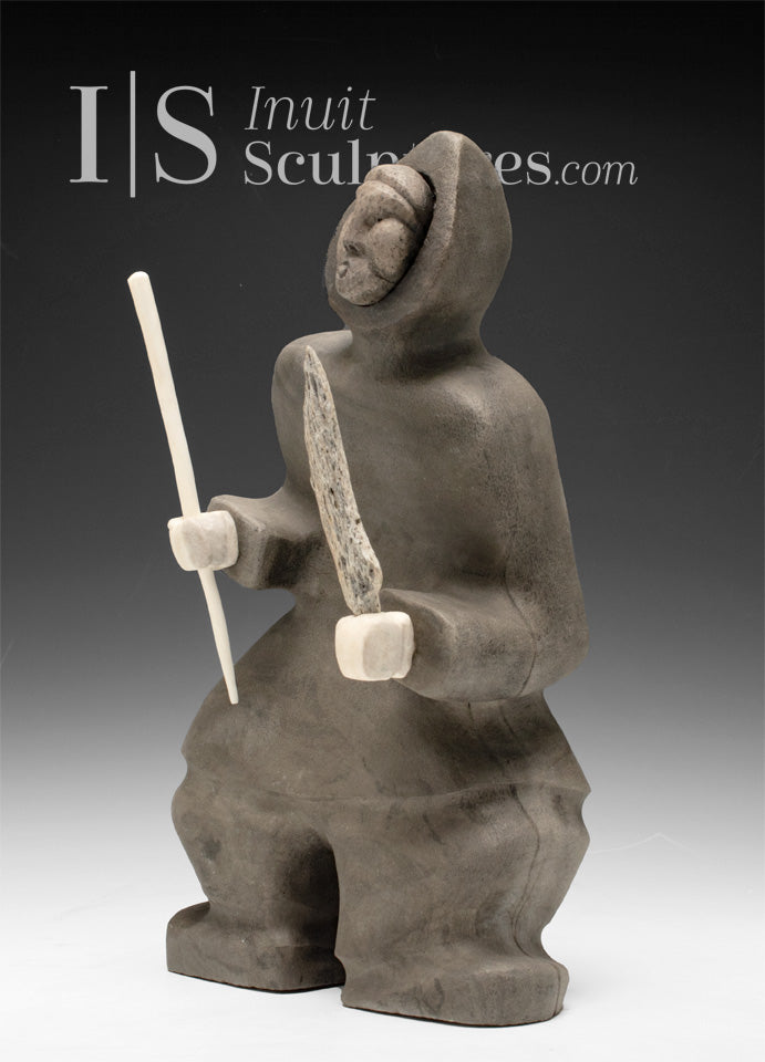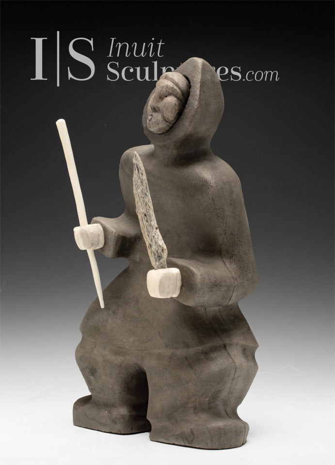 ANCIENT STORIES is an exquisitely carved Drum Dancer with the most unique Inuit face.
