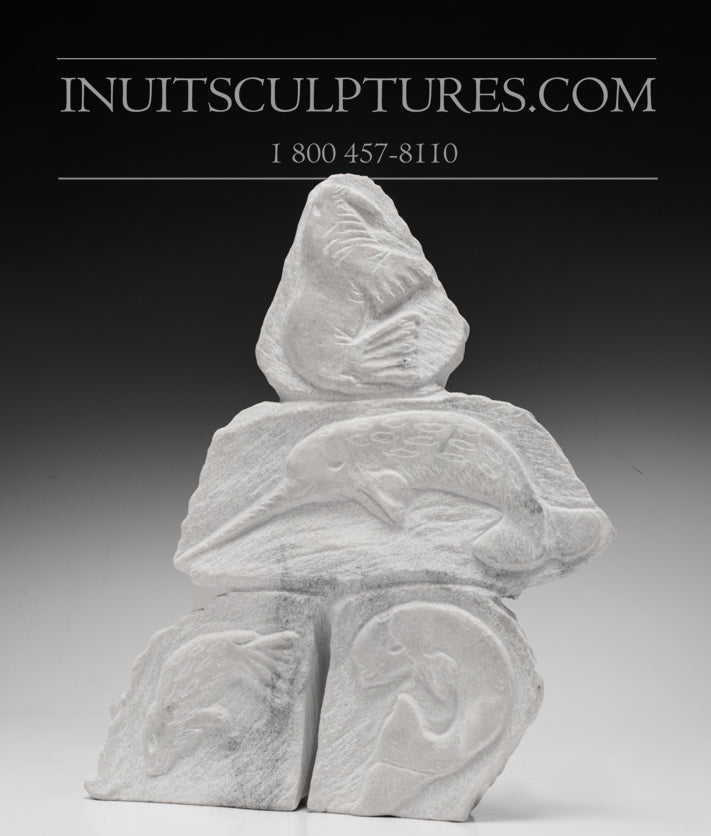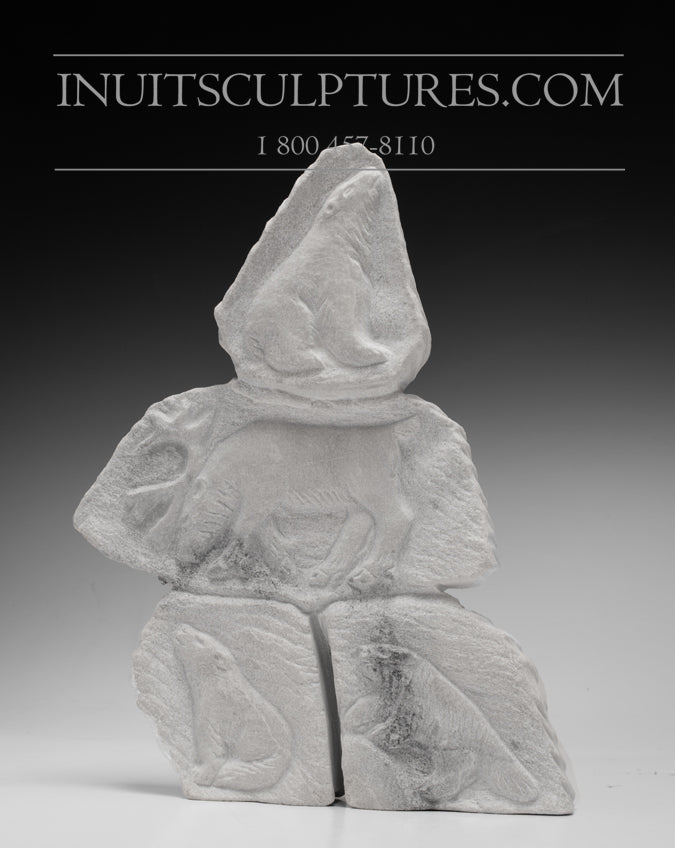 Inuit art: Inukshuk (Relief Caribou, Fox, Wolves, Walrus, Narwhal&Seals)