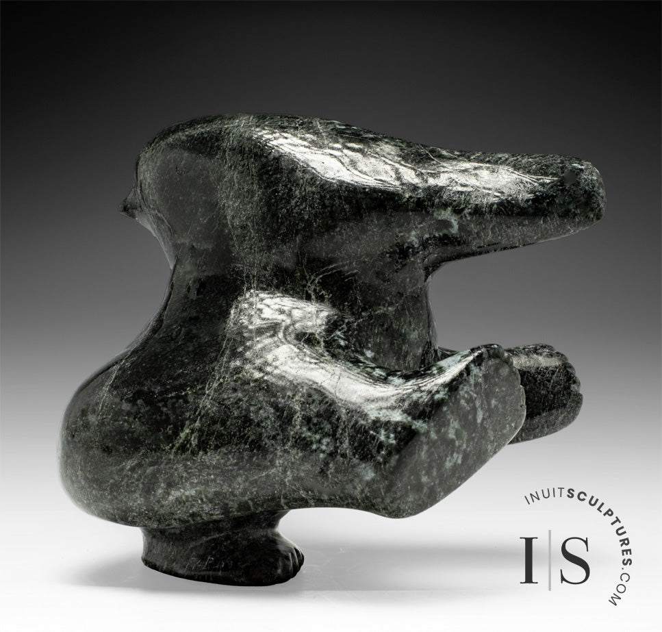 I don't recall ever seeing this deep black/turquoise colour in an Inuit sculpture.
