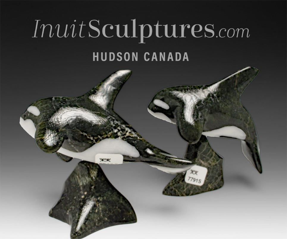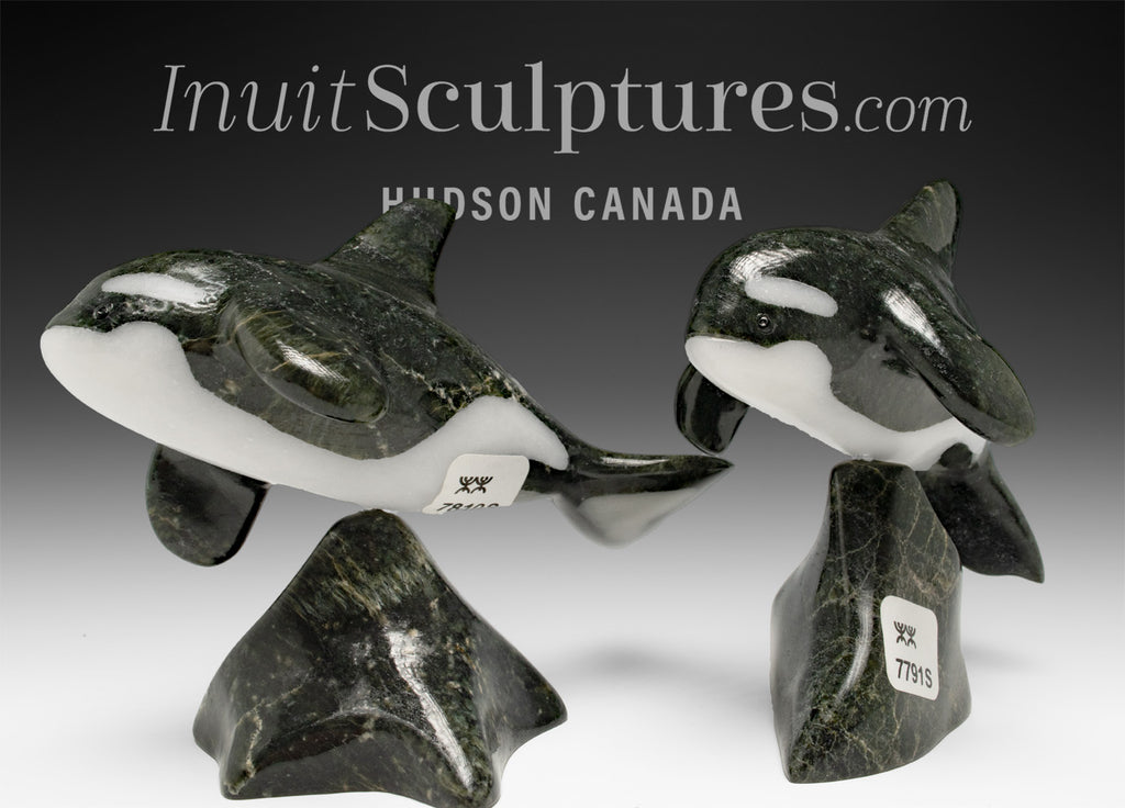 Johnnysa Mathewsie carved these two magnificent Orcas as members of the same family.