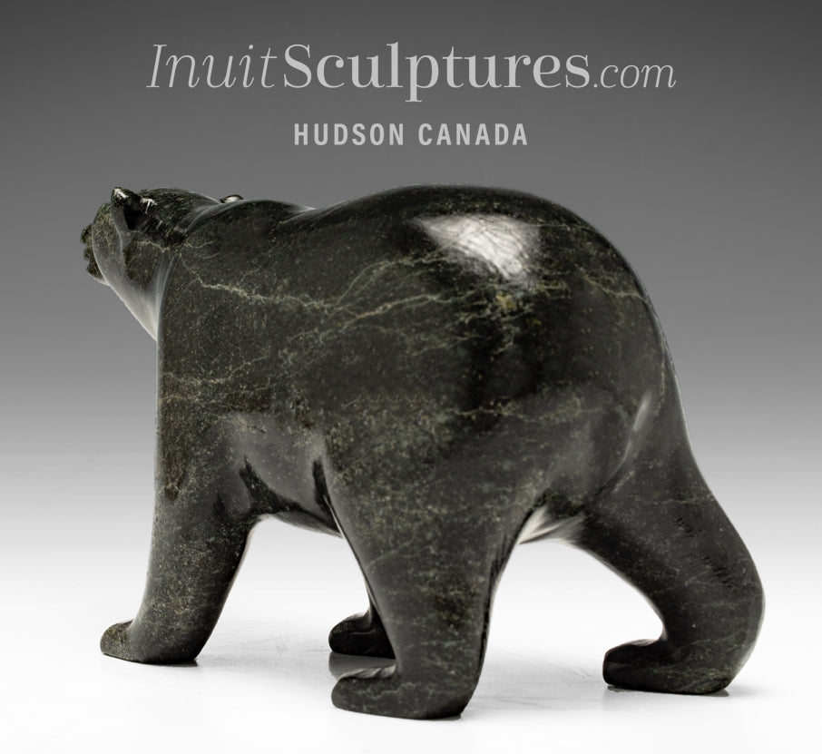 He is the quintessential black Inuit bear carving, jazzed up with a hint of thin green veining.