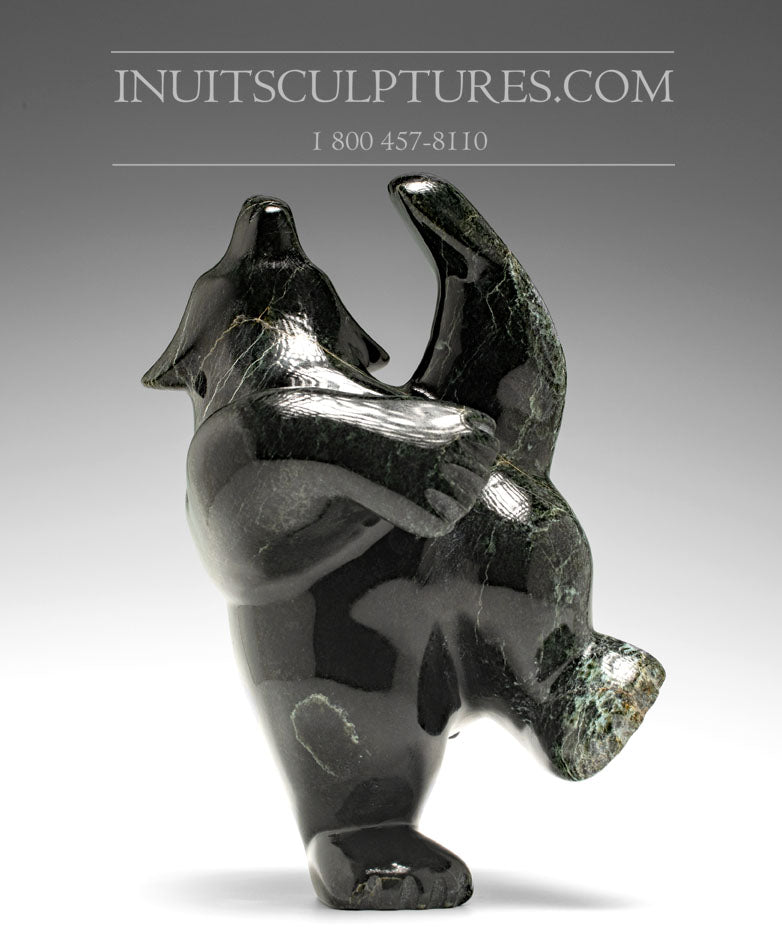 Ottokie Samayualie takes great care in choosing his stone. His carvings are made of the finest serpentine of varying green shades, and then smoothed and polished to best exhibit the lustre of the stone.