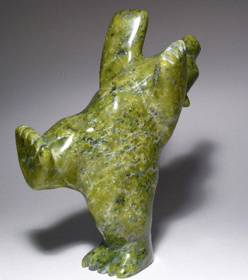 What attracts me most about this bear is the vibrant and electrifying apple green colored stone Moe uses to carve with. The color alone sends very positive and happy vibes around the room and really makes this dancing bear stand out. Also, the movement and gorgeous shiny polish for this bear is beautiful and really make it come life.
