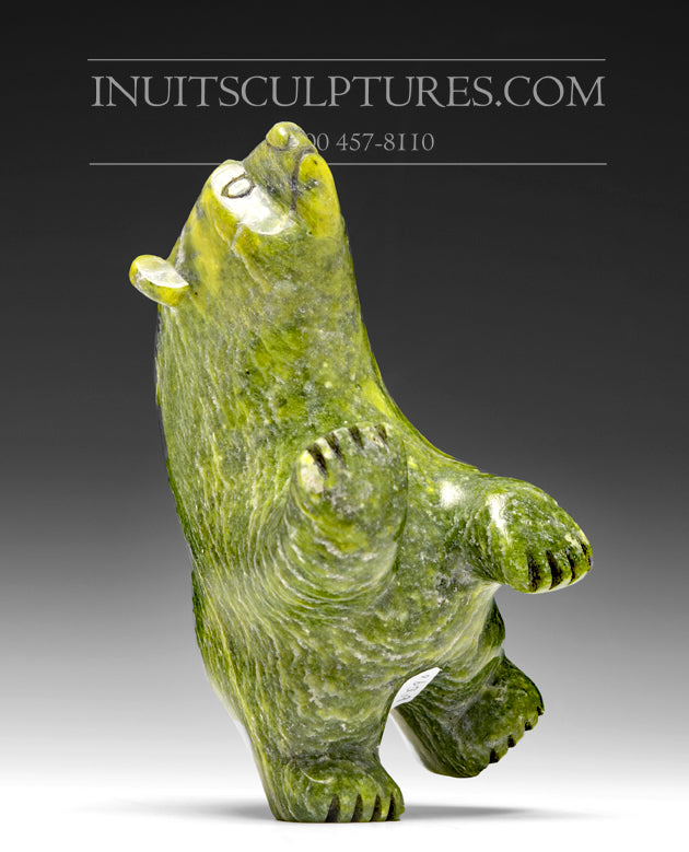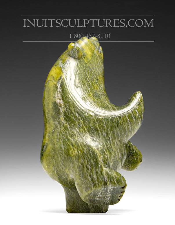 The apple green stone places the emphasis on the black etched lines that define the chubby toes and very serious face of this Shaa Dancing bear.