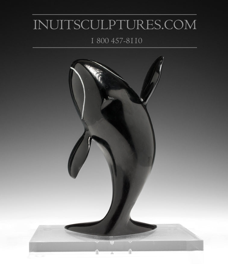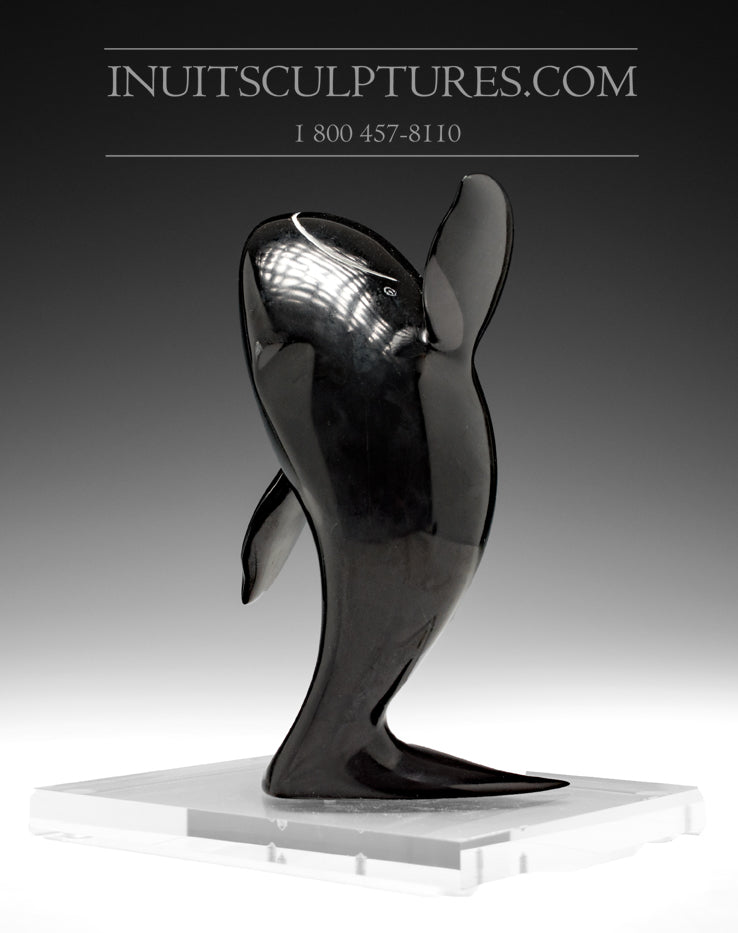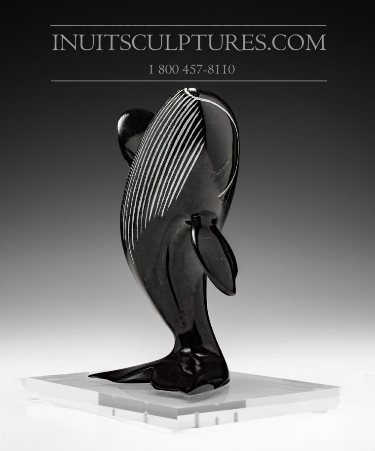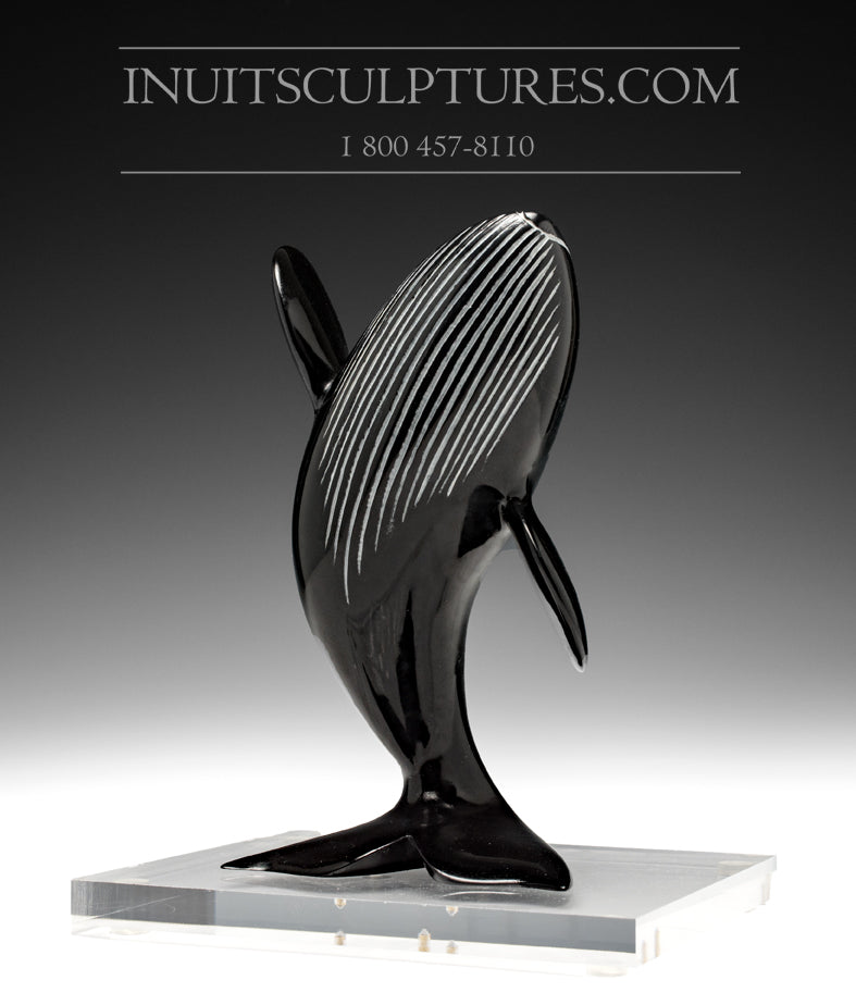 This dynamic Bowhead whale carved by Nungusuitok, has been suspended forever in time in a dramatic breaching position.
