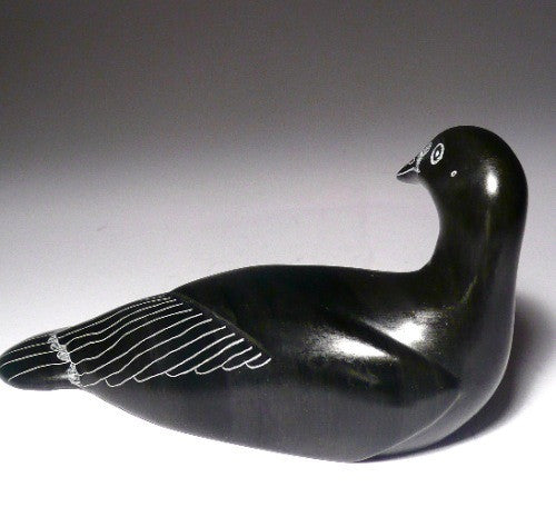 This is a stunning black duck made by one of the top artists in Sanikiluaq – Joe Kavik. Joe has been carving for over 40 years and is a master artist.