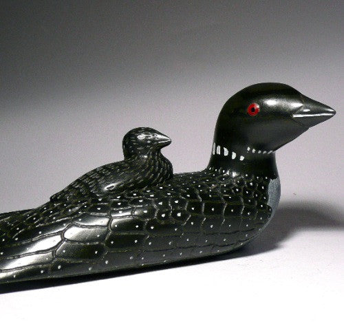 This is another outstanding completely original mother loon and her baby by world famous Inuit artist Jimmy Iqaluq from Sanikiluaq.
