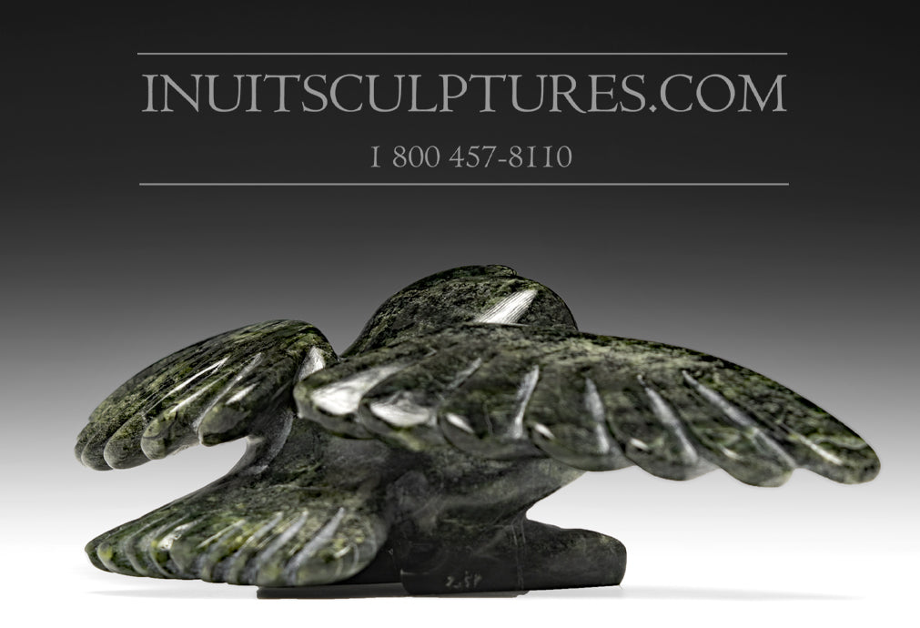 "Toonoo's parents, Josephee Sharky and Ragee Killiktee, were both carvers, though he credits his grandfather, master carver Kuppapik Ragee and his uncle Shorty Killiktee as influences. Toonoo started carving at ten, began to get serious at thirteen and first exhibited when he was just 17. He is regarded as one of the most exciting young carvers to emerge in the Arctic. His themes include fanciful and quite dramatic treatment of wildlife, particularly birds, and transformational works that are both powerful and humorous. His work is widely shown, and he was elected to the Royal Canadian Academy in 2003." *