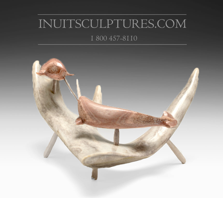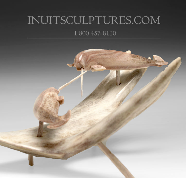 NOTE: In the 12 years that I have been a curator of Inuit art, I have never seen a scene like this one: two narwhals, circling each other in preparation for battle!